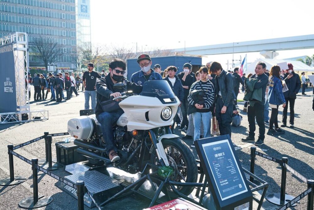2023年12月10日のお台場、朝9時の入場口にはすでに多くの来場者が開門を待ちわびていた。2023年の稲フェスは、久しぶりにクラブハーレーとの合同開催となり、二輪駐輪場には来場者のハーレーがずらりと並んでいる。どのブースにも人だかりがあり、少し高いところから会場を見ると、人、人、人! 会場内が熱気に包まれているのは距離があっても感じられる。