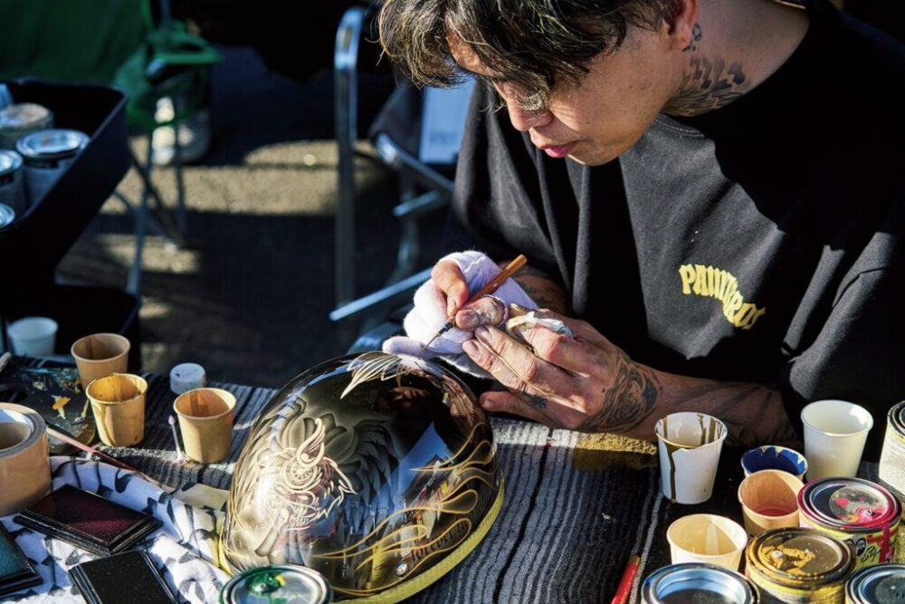 ピンストエリアには10人のピンストライパーが集結し、愛用品をペイントしてくれた。また今回は子どもも楽しめるコーナーもあった。