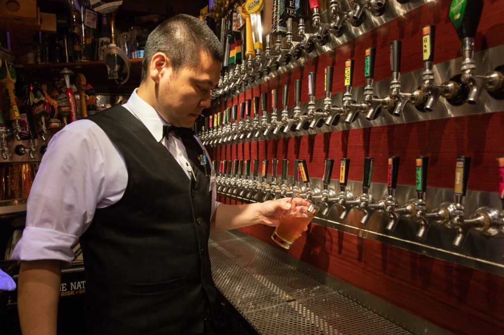 「僕たちは職人です。ビールを見ただけで味を想像できなければなりません。工場から到着するビール樽は、メーカーによってガス圧が強かったり弱かったりするんです。そのままだと僕たちが出したい味じゃないので、ビールによってはガスを入れたり、逆に抜いたりとビールの個性を見極めた上で、提供しているんです」