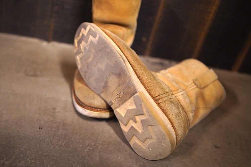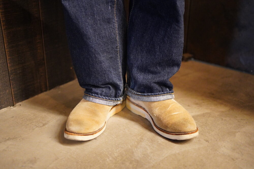 「新品じゃないの?」というのにはわけがある。同じようなモデルを他のブランドで探すとまず見当たらない。さらには本家レッドウィングでも気がつけばこのモデルは絶版で、欲しいと思った数年前の現行品はスウェードの質感が私には良すぎたのだ。