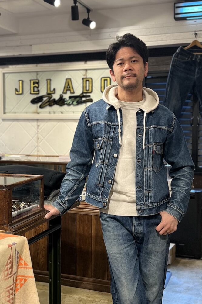Gジャン好きはまずは大阪にあるJelado Westに行くべし、Gジャンを使ったスタイリングや着こなしだけでなく、エイジングのこつなども教えてくれる。