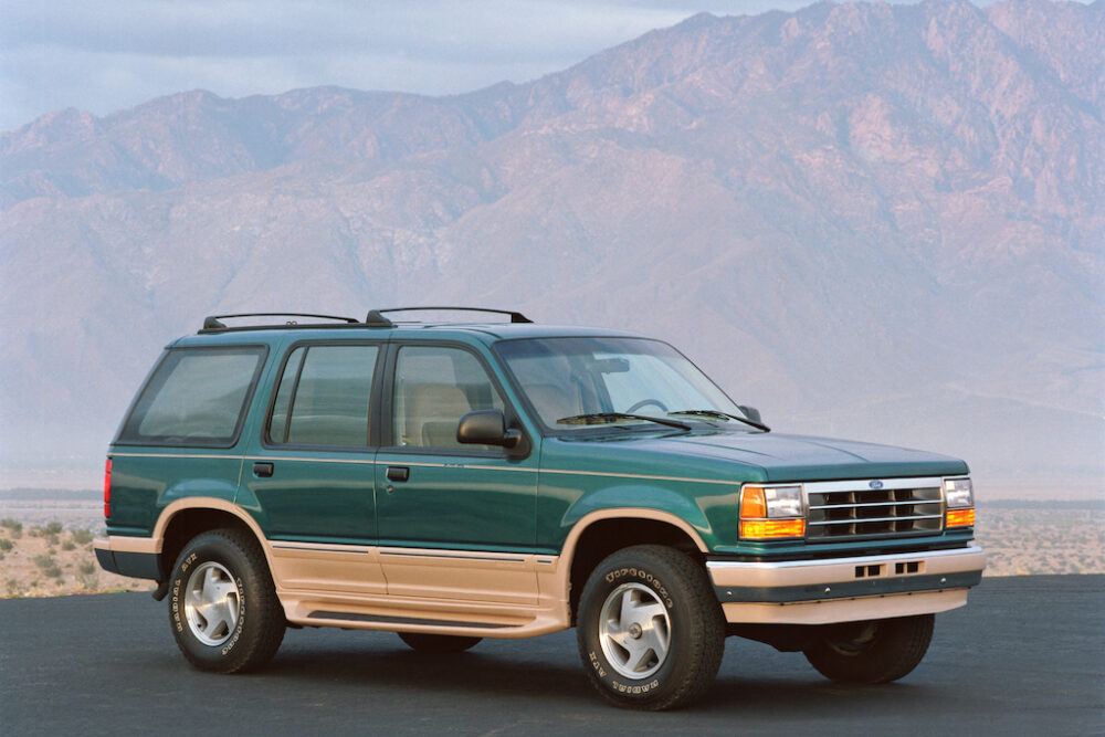 それまでフォードを代表するSUVだったブロンコおよびブロンコ2が、フルサイズボディのブロンコのみに整理されることで投入されたのがエクスプローラー。ボディはスポーティな2ドアと4ドアモデルが用意され、悪路走破性の高いファミリーカーとして生まれた。