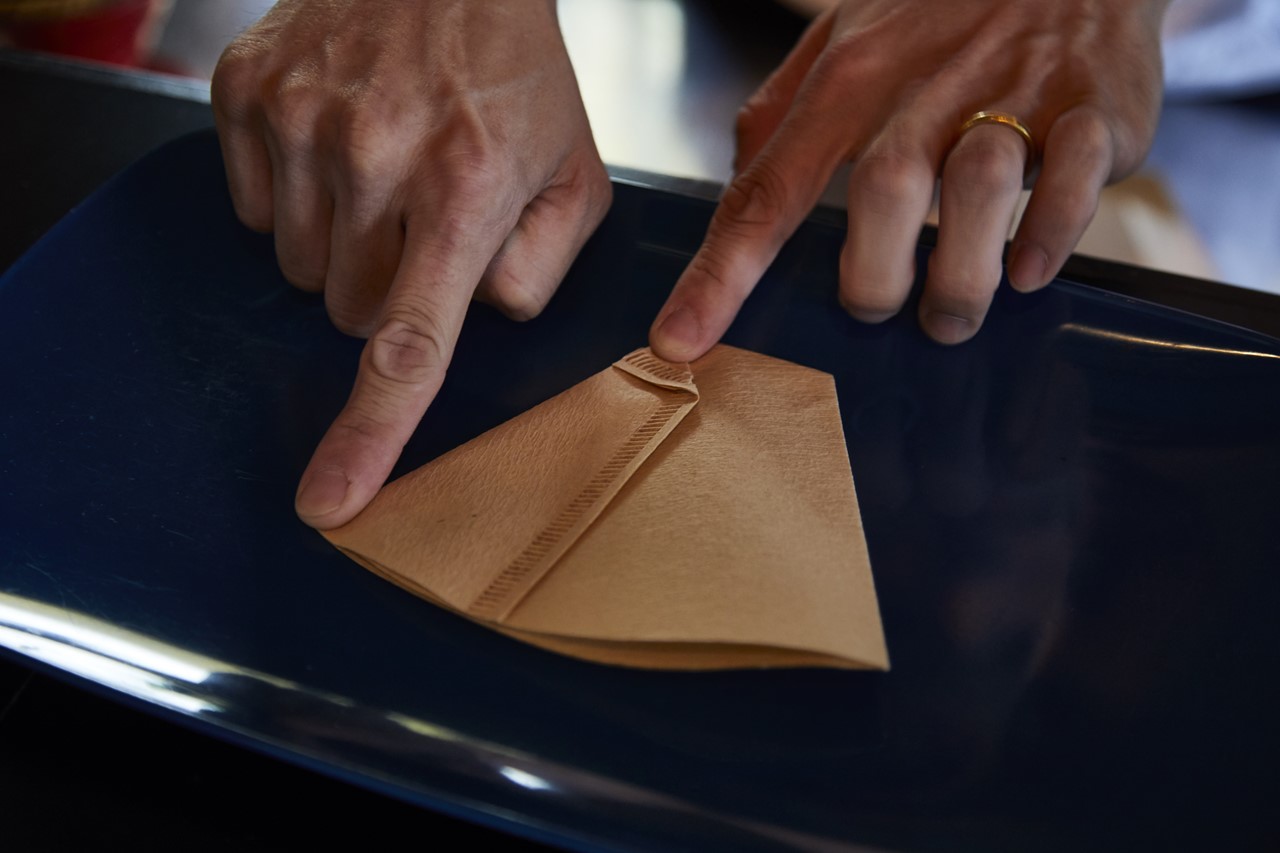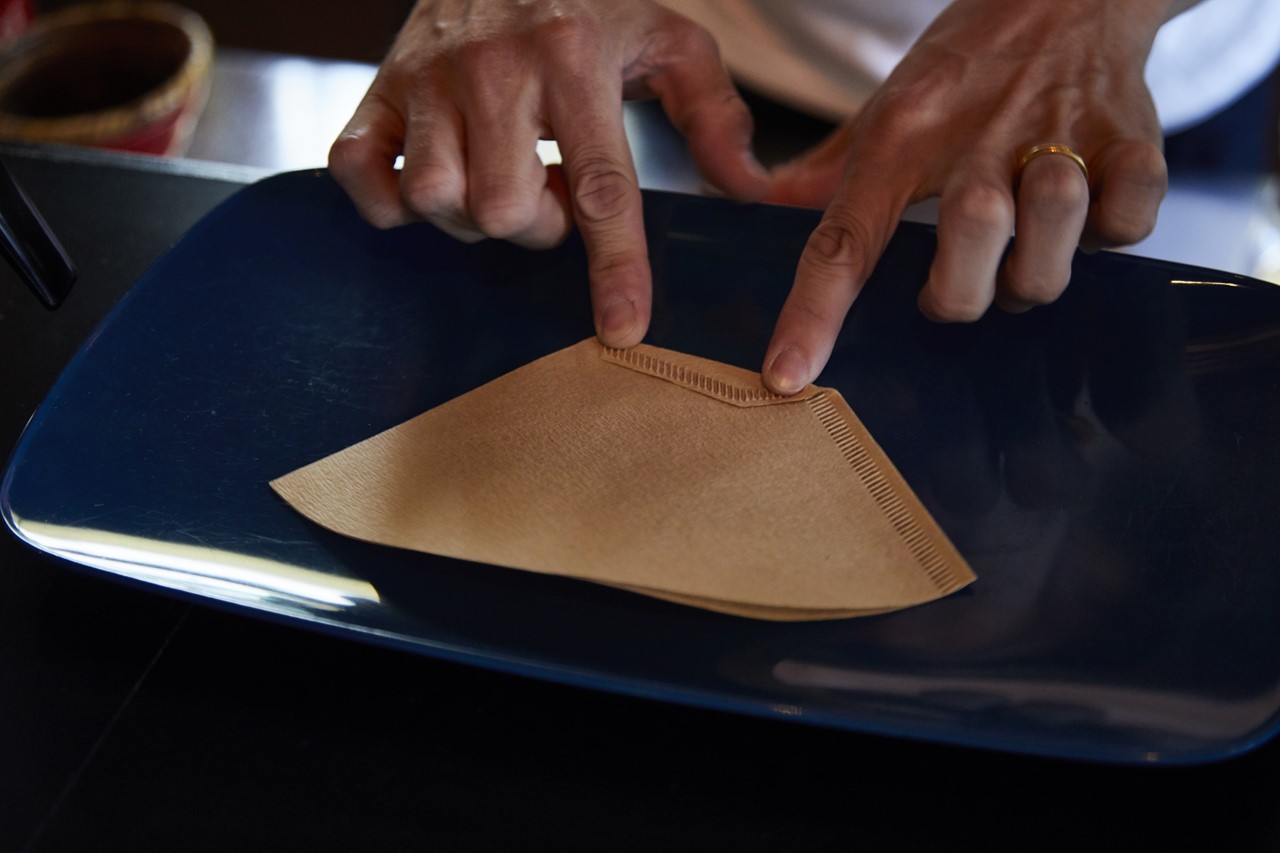 ドーナツドリッパーには専用ペーパーがないため、カリタのペーパーを使用する。その際は折り方に少しコツが必要。もちろん他のペーパーも使えるので、一例として参考までに。