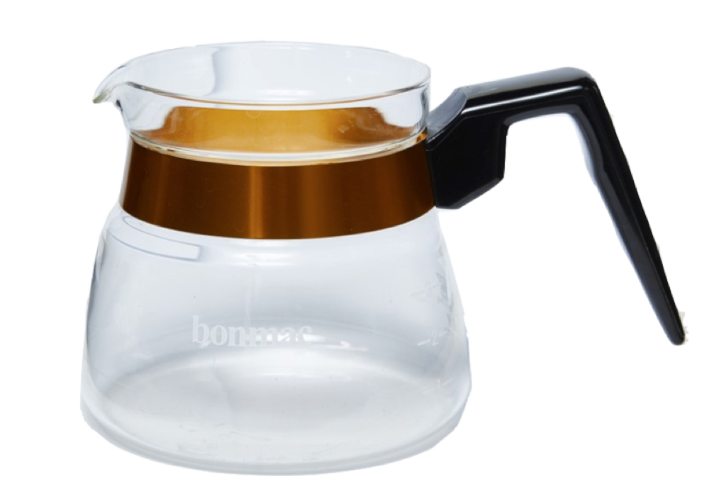 安定感抜群のガラス製サーバー。様々なサイズがあるが、こちらは700mL用。ハンドルの形状がしっかりしているため、注ぎやすくこぼれにくい。