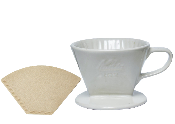 まずは定番ドリッパーとして人気が高い、カリタの3つ穴式ドリッパーでの注ぎ方を指南。無漂白の針葉樹パルプを使ったカリタのペーパー102とセットで使用。