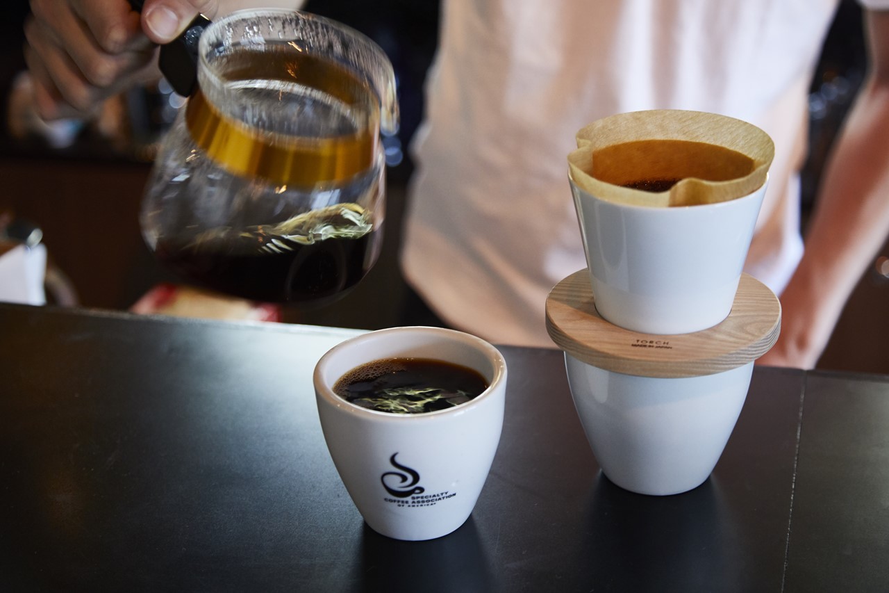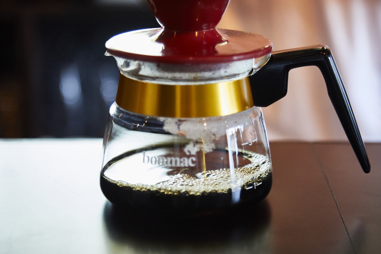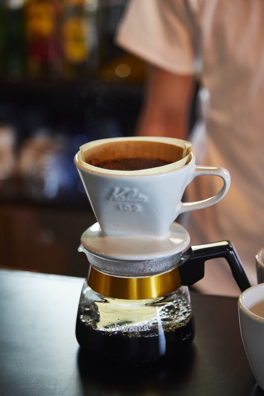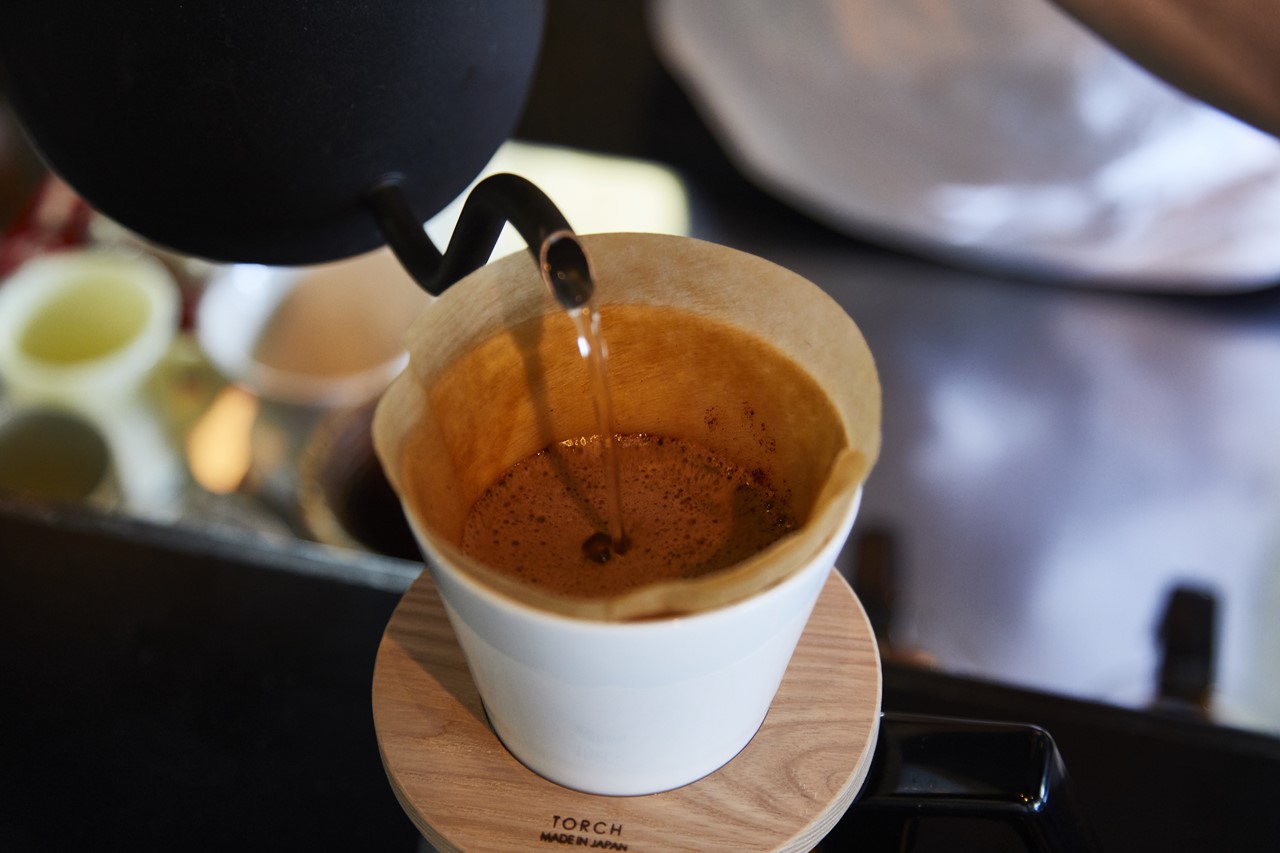 お湯を最後までしっかりと落としきったら完成。「このドリッパーはお湯抜けがいいぶん、コントロールが難しい側面もあります。ポイントは、なるべく壁にお湯を当てないこと。それが美味しく抽出するコツ。慣れたら使いやすいですよ」