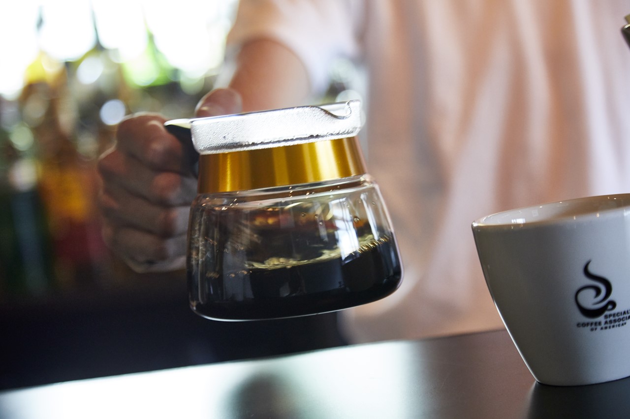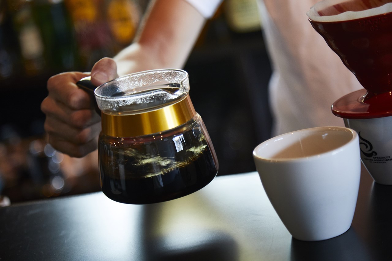 抽出を終えたら、カップに注ぐ前にサーバーを少し回してコーヒーを馴染ませる。「香ばしい匂いも広がるし、空気も入って味わいも、よりまろやかになります」