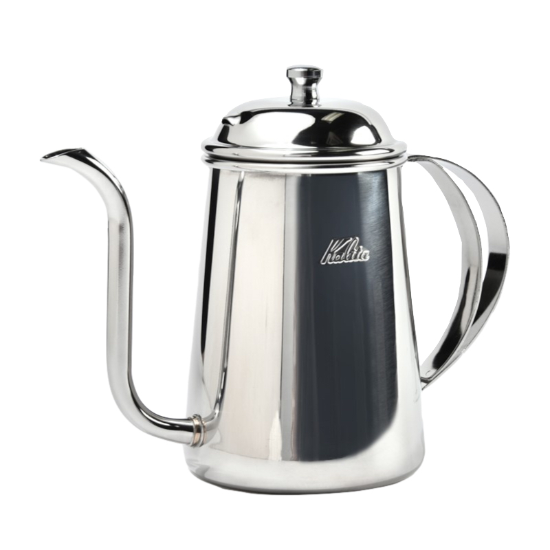 注ぎ口が細く最後まで細いお湯で抽出していくことができる。取っ手部分が2重になっていて持ち上げやすいが火にかけると暑くなるので注意。満水で容量は約700mL。(カリタ TEL045-440-6444 http://www.kalita.co.jp)