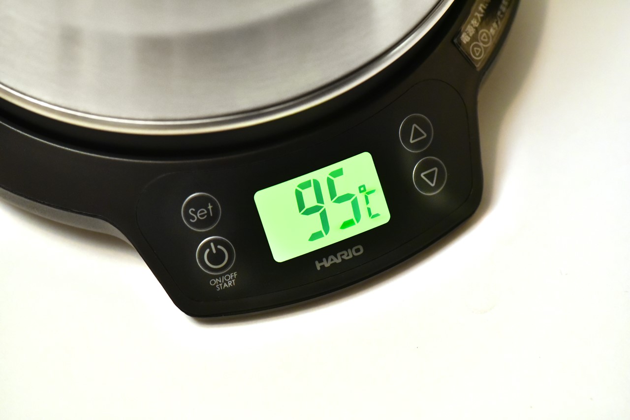 50~96 度で1度単位での温度設定が可能。加熱後は設定した温度で15分間保温も可能。持ちやすいハンドル形状と細くて長い注ぎ口でドリップのクオリティアップ間違いなし。(ハリオ TEL0120-398-207 http://www.hario.com)
