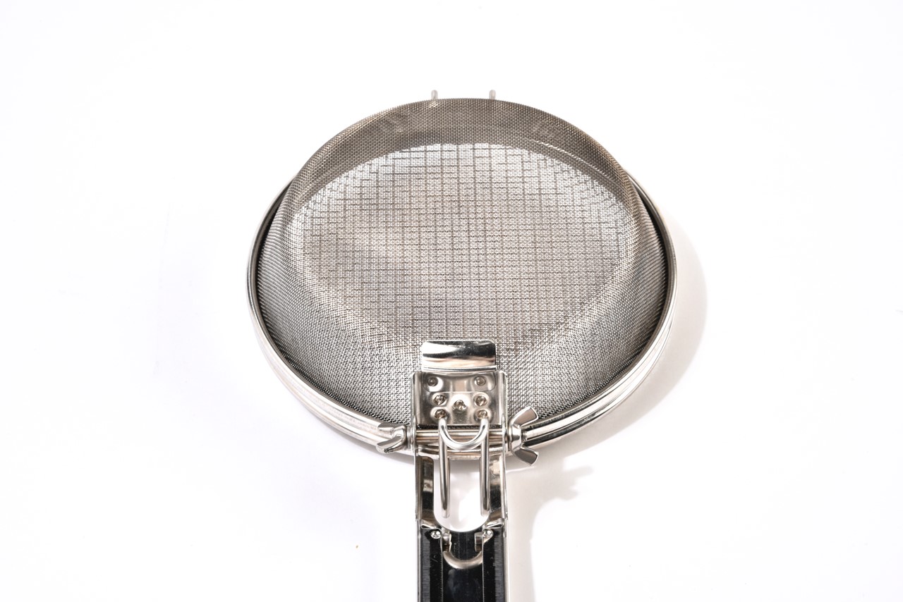 底部に細かいメッシュの特殊耐熱鋼を使用することで炎を通さず熱に変換するため焙煎ムラが少ない。ハンドルは折りたためるだけでなく伸びるので焚き火でも熱くなりにくい。(ユニフレーム TEL03-3264-8311 http://www.uniflame.co.jp)