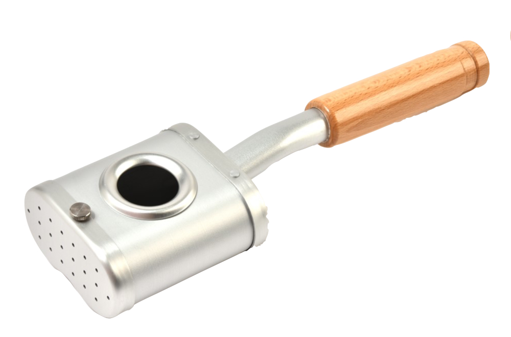 生豆を焙煎器に入れてガスコンロで3~5分火にかけながら左右に振るだけ。底部の形状のかげで生豆が回転するような作りになっているので、初心者でもムラなく焙煎できる。(発明工房 TEL0463-74-1717 http://invention.co.jp)