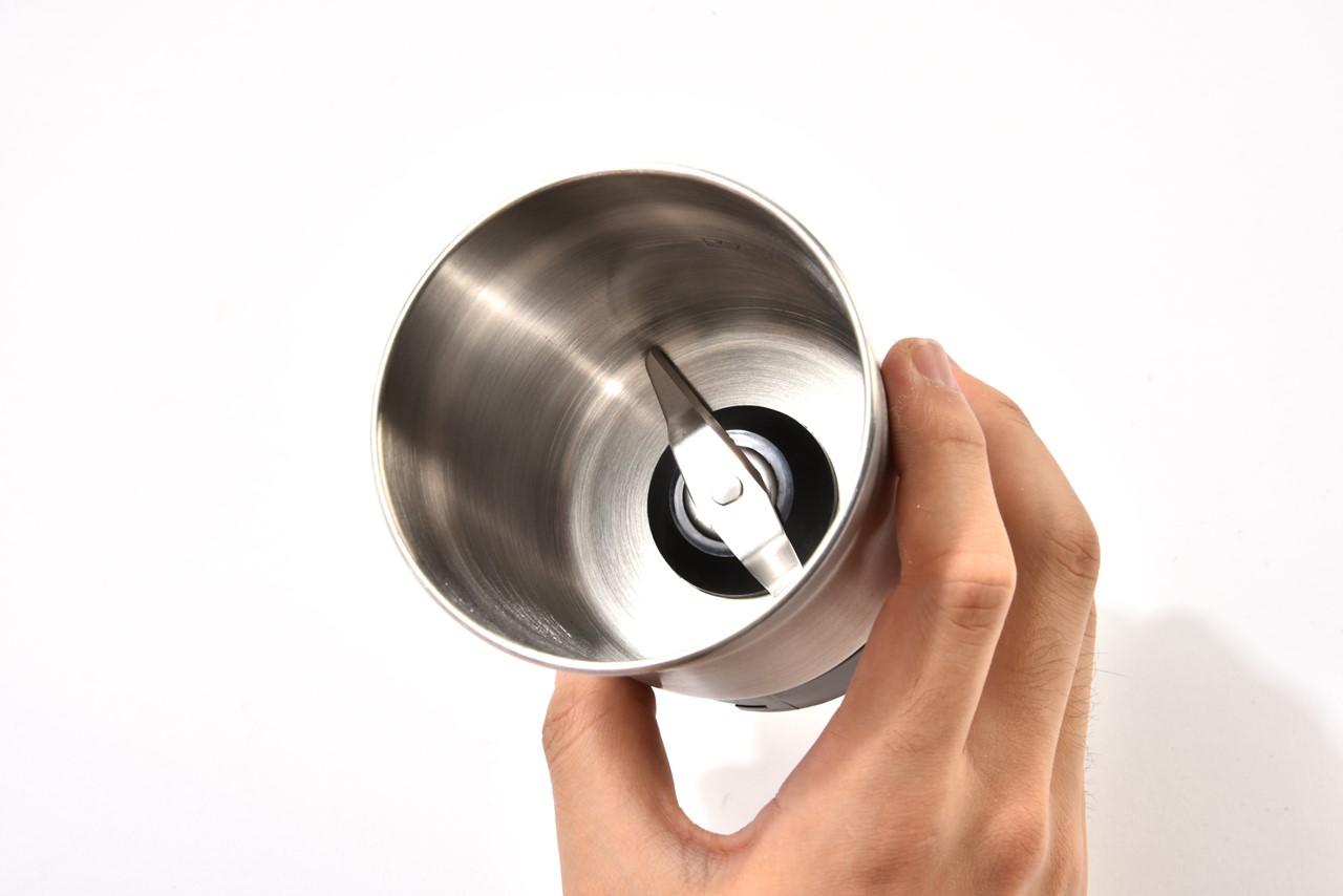 回転速度が遅く摩擦熱による豆の風味を損なうことなく、均一に挽くことができるコニカル刃を使用。コンテナはガラス製でプラ製に比べて静電気が少なく粉の飛散も少ない。(ボダムジャパン TEL03-5775-0618 http://www.bodum.com/jp/ja)