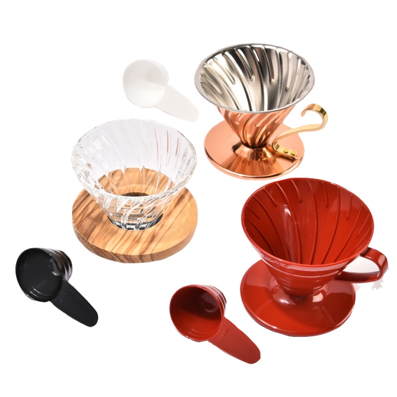 V60 透過ドリッパー02 レッド/V60 カパードリッパー/V60 耐熱ガラス透過ドリッパーオリーブウッド(HARIO)