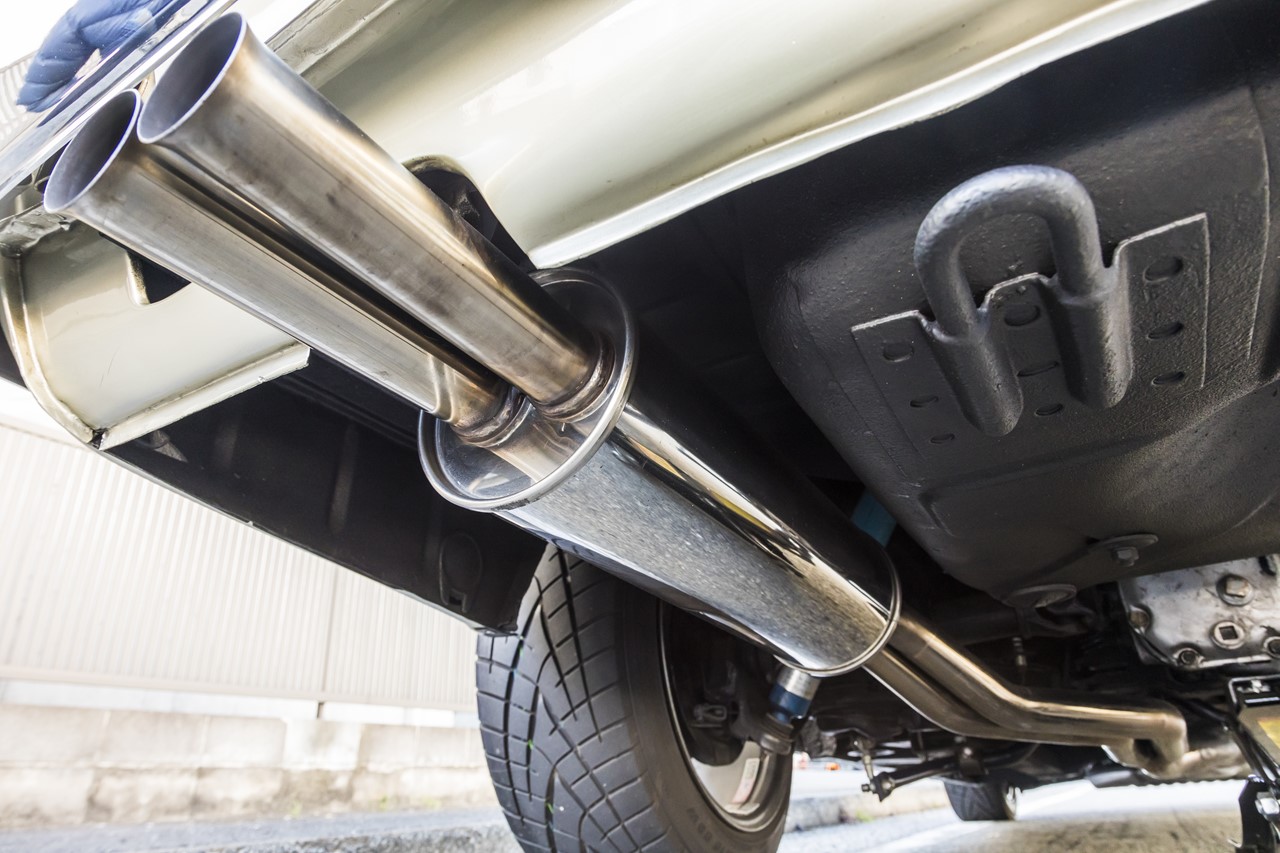 マフラーはあえて違和感のないようにパイプ径やサイレンサーの形状にもこだわって製作されている。