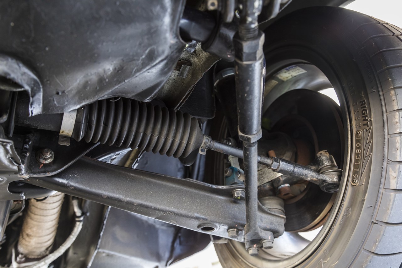 FD3S用を流用してラック&ピニオン化。このほかにも足回りは各部に手が入れられている。