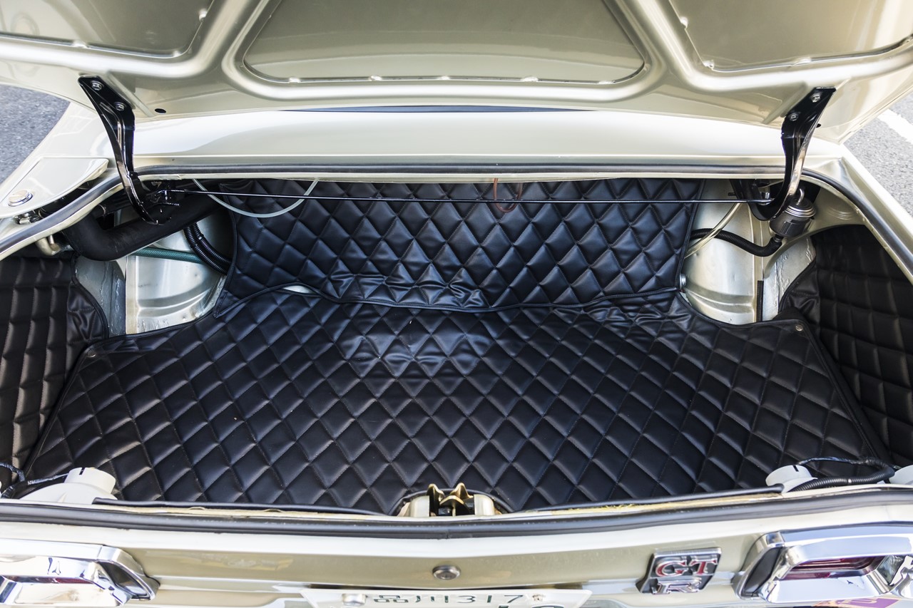 いわゆるR仕様となった外観は極力そのままに、エンジンルームには4リッターのV8を搭載。さらにZ33用の6速マニュアルを組み合わせ、トルクフルなV8エンジンを堪能できる。もちろんオートエアコンやパワステなどの快適装備が備わるのはいうまでもない。’17年にこのハコスカを入手した後にボディを徹底的にポリッシュし、ガラスコーティングも行なう。さらに入手できるエンブレム類はすべて新品に交換してディテールアップに励んだ。