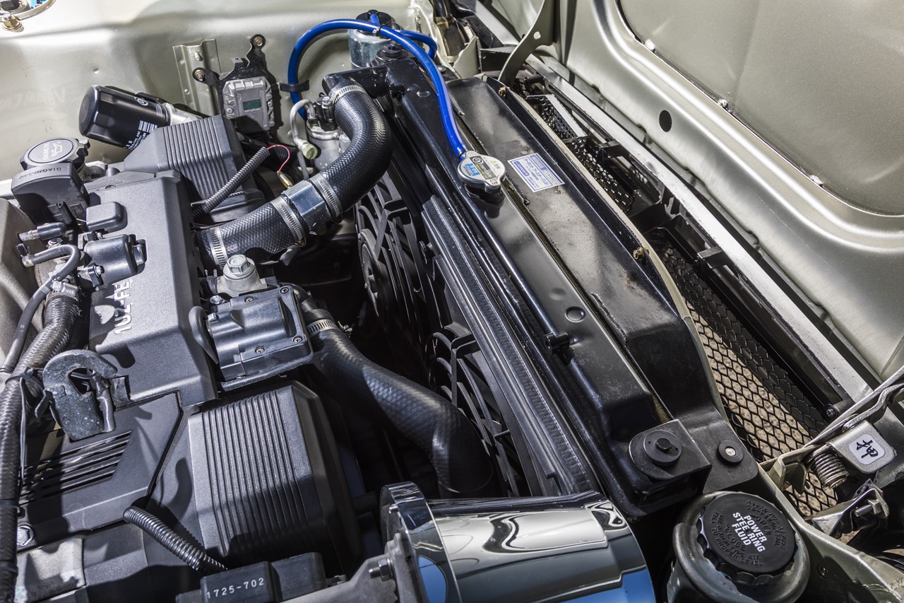 プロデュースしたのは、愛知県のロッキーオート。これまで数多くのエンジンスワップ車を世に送り出してきた同社ならではの快適に乗るための一台だ。富樫さんは若い頃からケンメリやサニー、サバンナRX3などに乗ってきた。一時期はサーフィンにハマり、ケンメリのバンで毎週湘南に通っていたこともあるという。