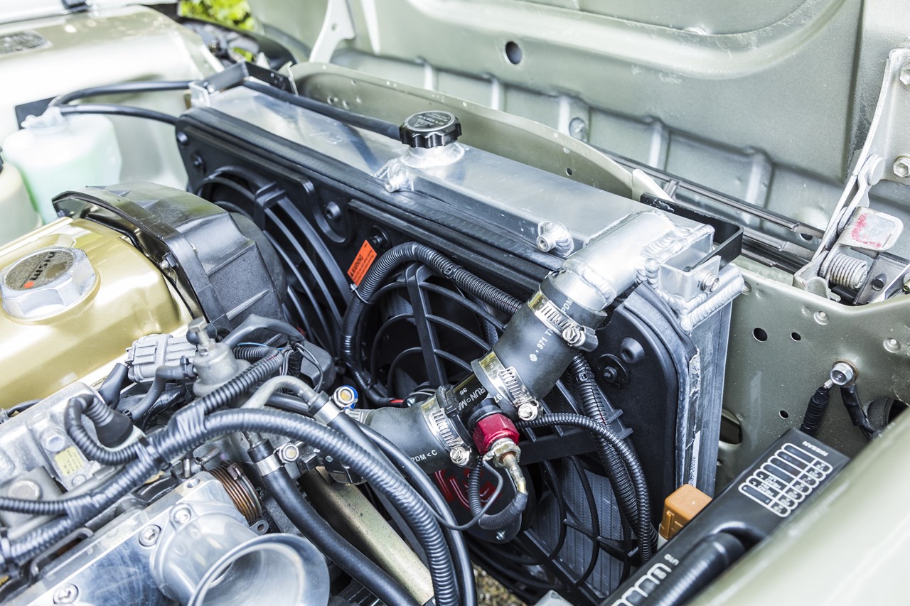 ラジエターはHPI製の大容量アルミ製で、大型電動ファンを二基搭載する。