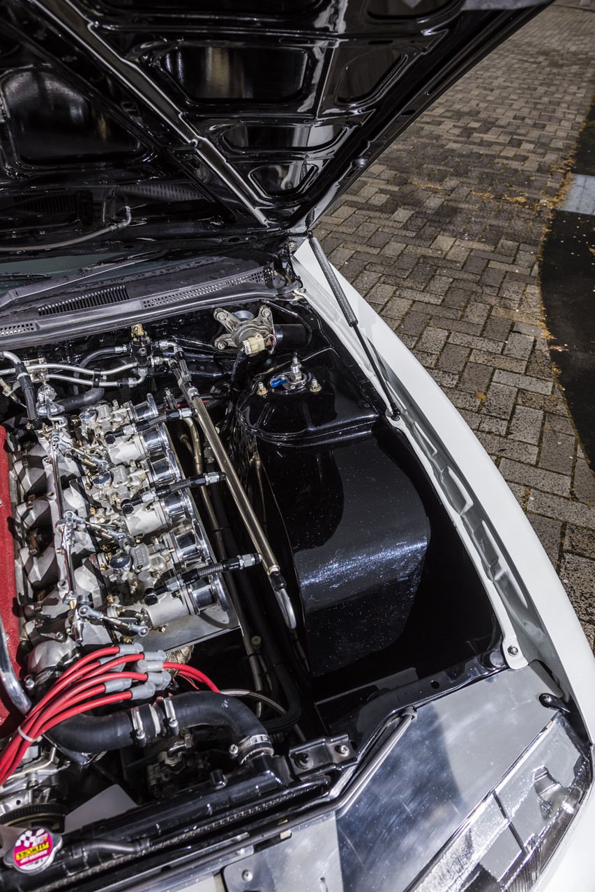 サイクルフェンダー化されたエンジンルームに美しくディテールアップされたL型ユニットが違和感なく収まる。