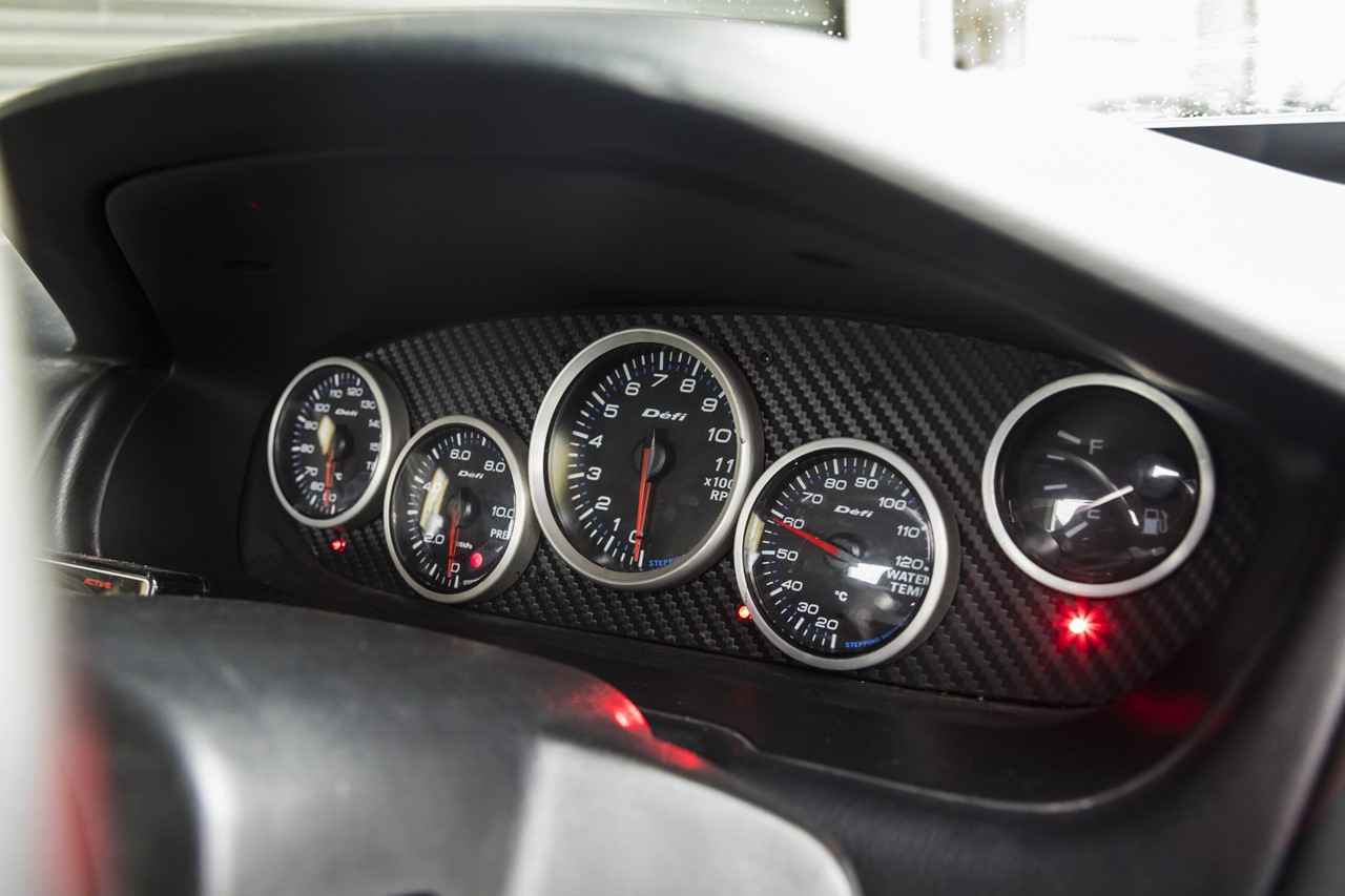 L型エンジンでは現代的なメーターを駆動できないため、Defiのゲージを並べる。