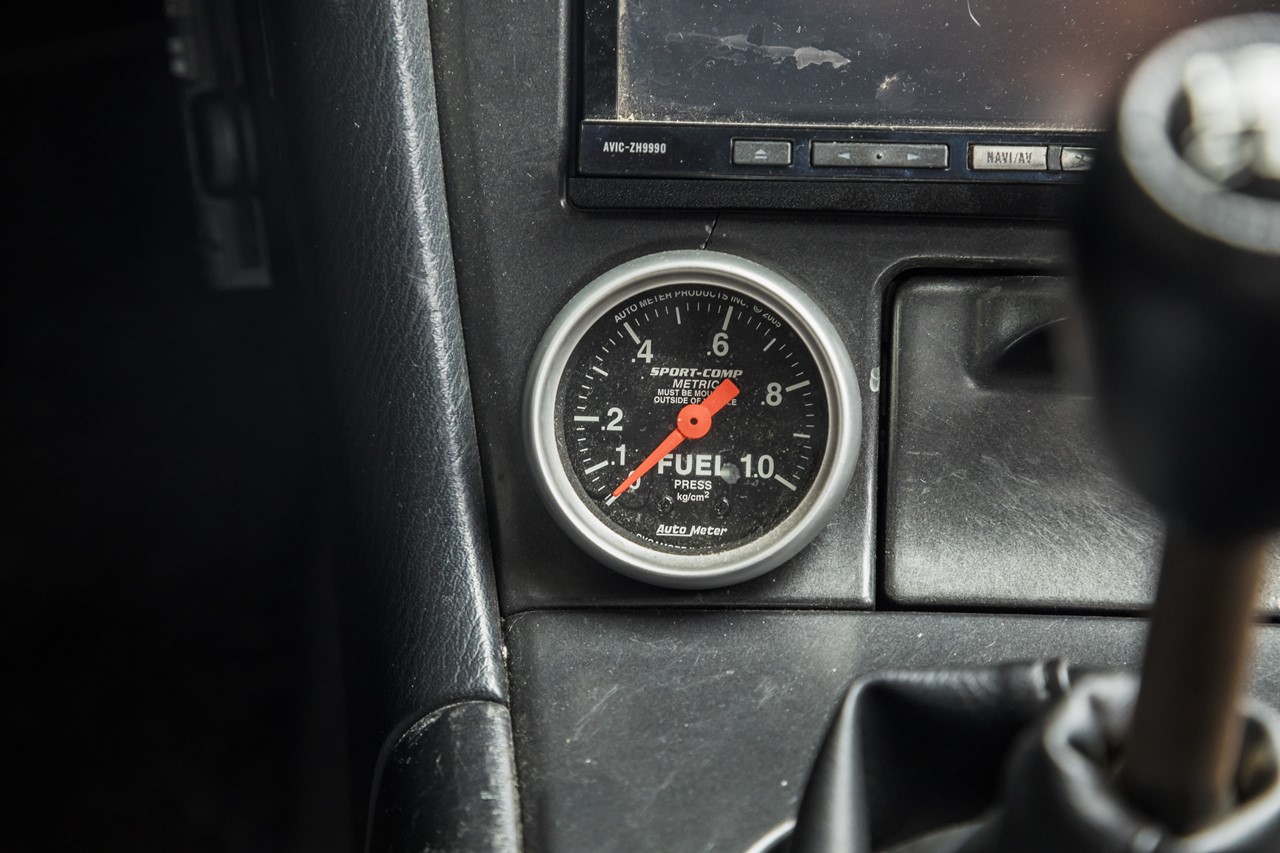 灰皿脇に燃圧計を装着。これはキャブレター車ならでは。