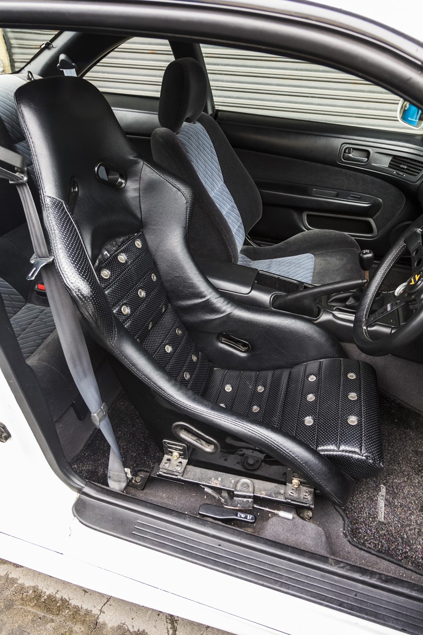 斎藤さんの好みで運転席はダッツンコンペ風に張り替えられたフルバケットシートを装着する。助手席はシルビアの純正シートとなる。