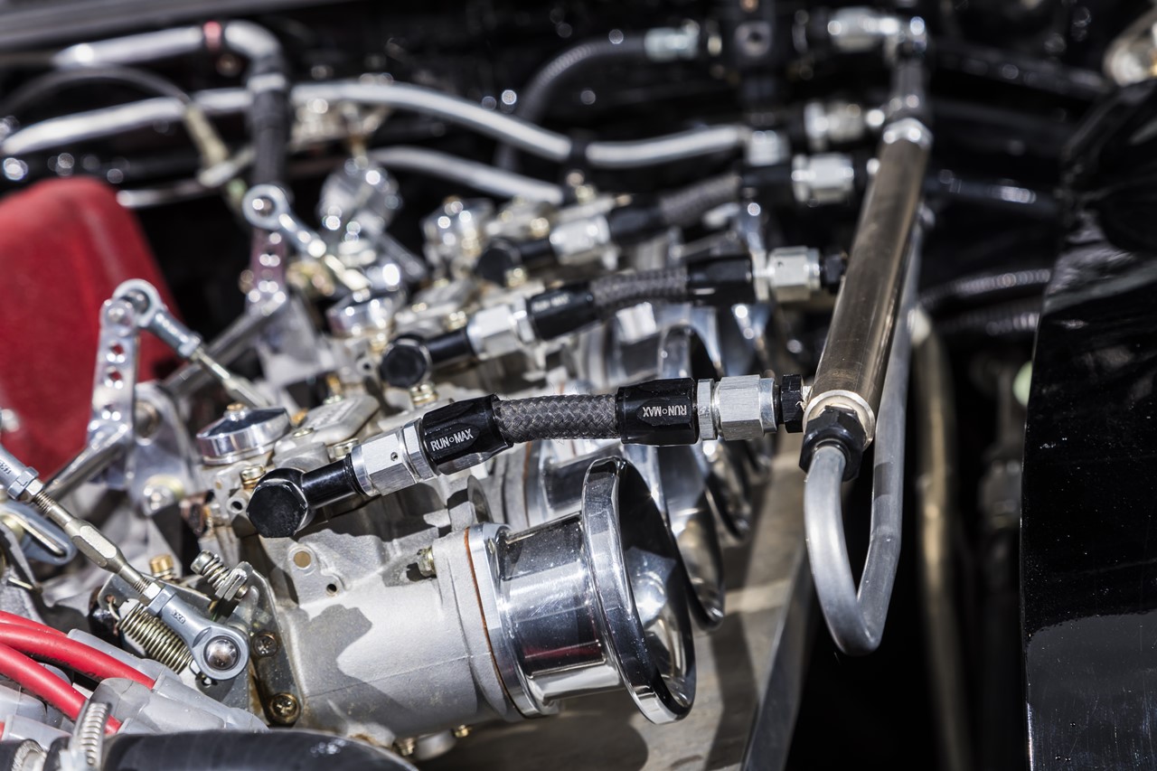 キャブレターはソレックスのφ50をチョイス。燃料の配管はインジェクション用のポンプを使用するため循環式となっている。