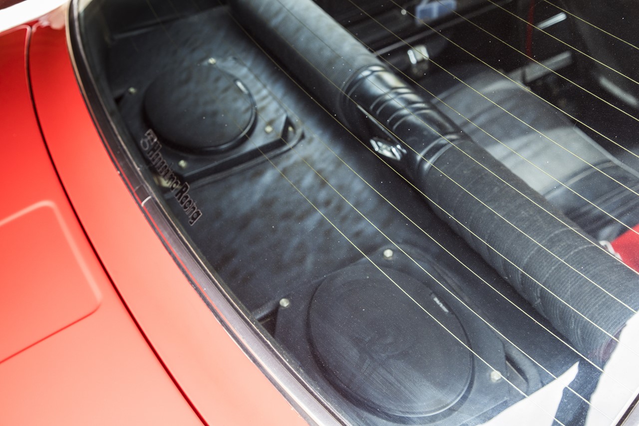 リアシート後部やドアにスピーカーを設置。前オーナーのこだわりでオーディオも充実している。