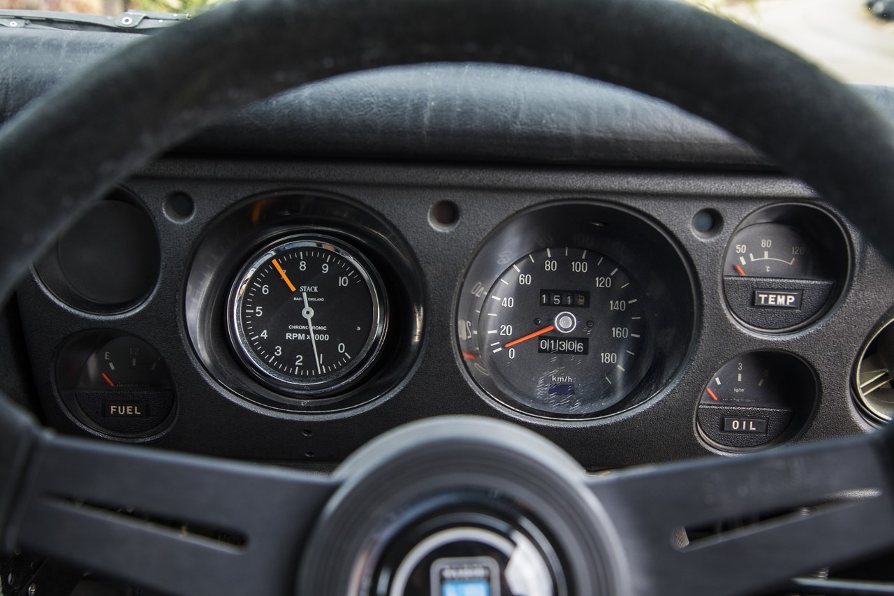 タコメーターはスタック製クロノトロニックに交換。往年のスミス製を再現しつつ、最新の電子制御となったステッピングモーター式だ。
