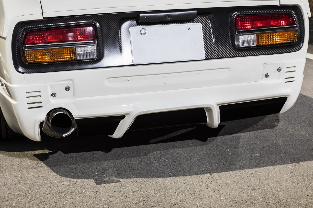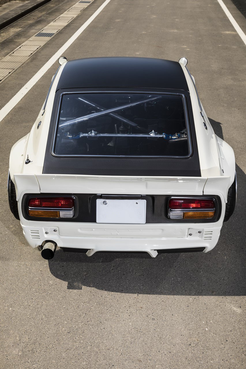 合わせて張り出したホイールを納めるべく、パンデムのボディキットをベースに、リアはさらに1インチ拡幅して装着。結果、このブラック&ホワイトのワイドボディが完成したのだ。