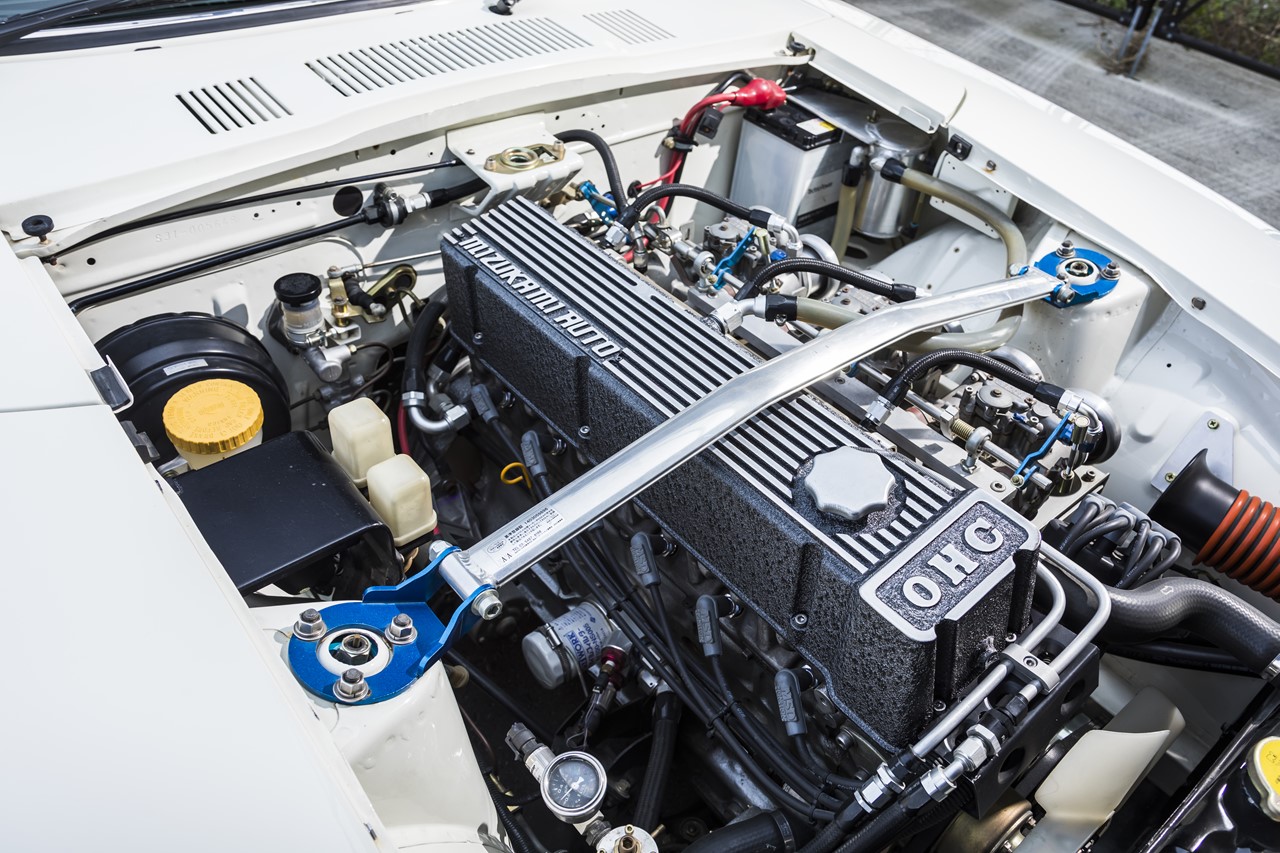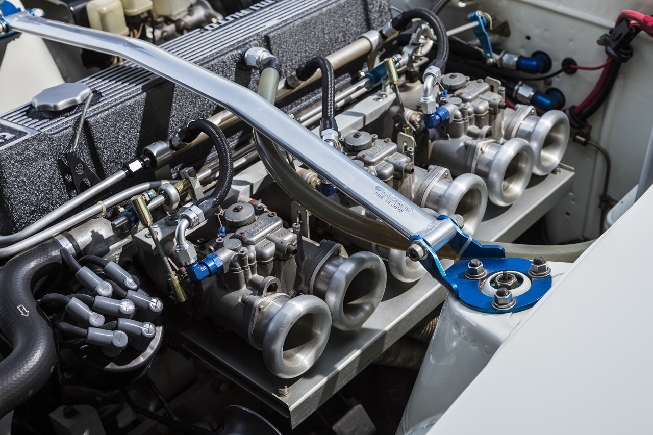 エンジンはL28改3リッター仕様。水上自動車でポート研磨やビッグバルブを組み込んだヘッドや、オリジナルカムを使用し、乗りやすい3リッターに。ボディ剛性確保のためにストラットタワーバーを装着している。