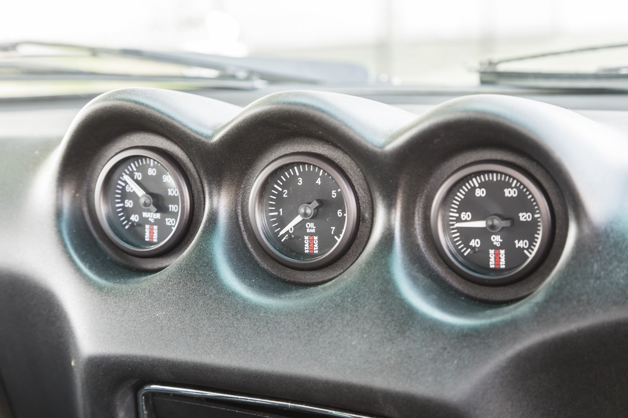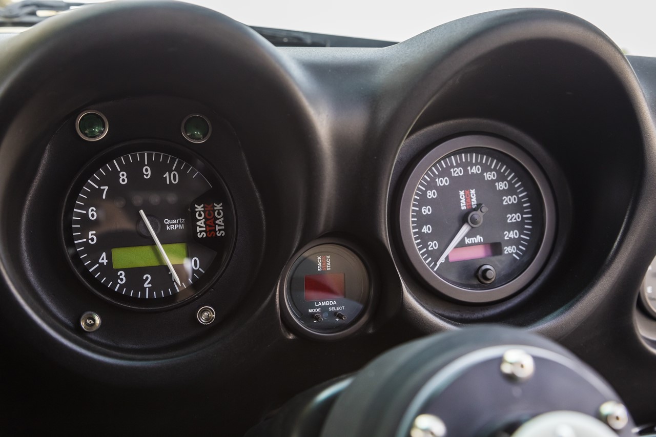 メーター類は全てスタック製で統一。タコメーターの周囲にはワーニングランプを配置。ステアリングコラム上にはAF計をセットする。