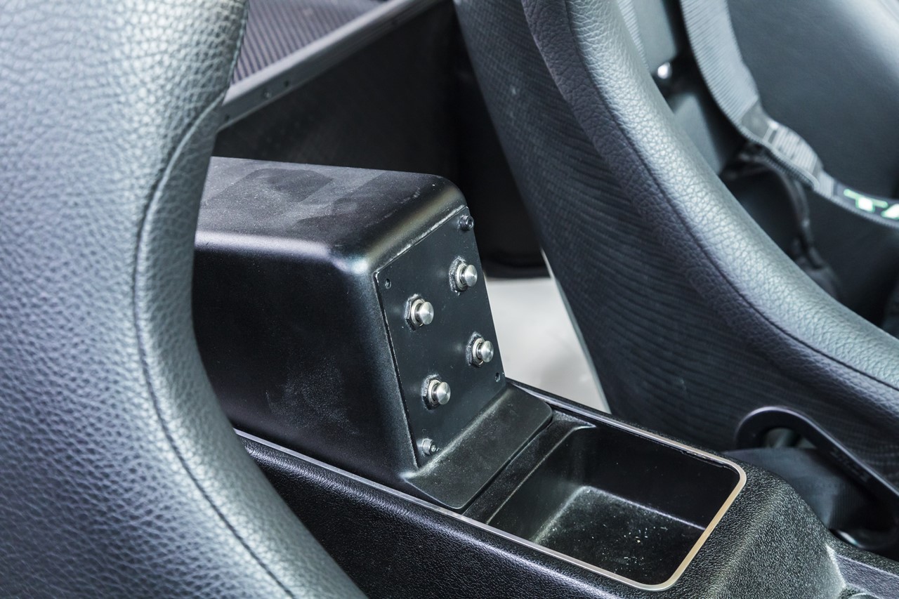 ボディはアルミ製の11点式のロールバーをセットする。またリアのストラットタワーバーにはシートベルトマウントを追加し、タカタの4点式ハーネスを装着する。
