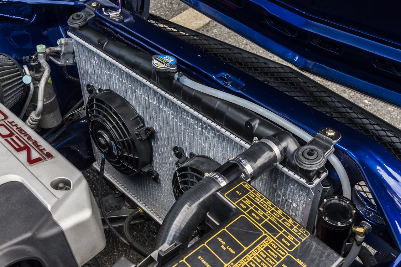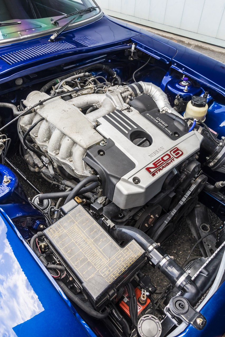 エンジンはR34時代のNEOストレート6と呼ばれるVVTi付きのRB25DEで、NAながら200馬力を発生するパワフルなユニット。通常のL型よ りかなり後方にマウントされている。同じくR34から移植されたラジエターには電動ファンが備わる。