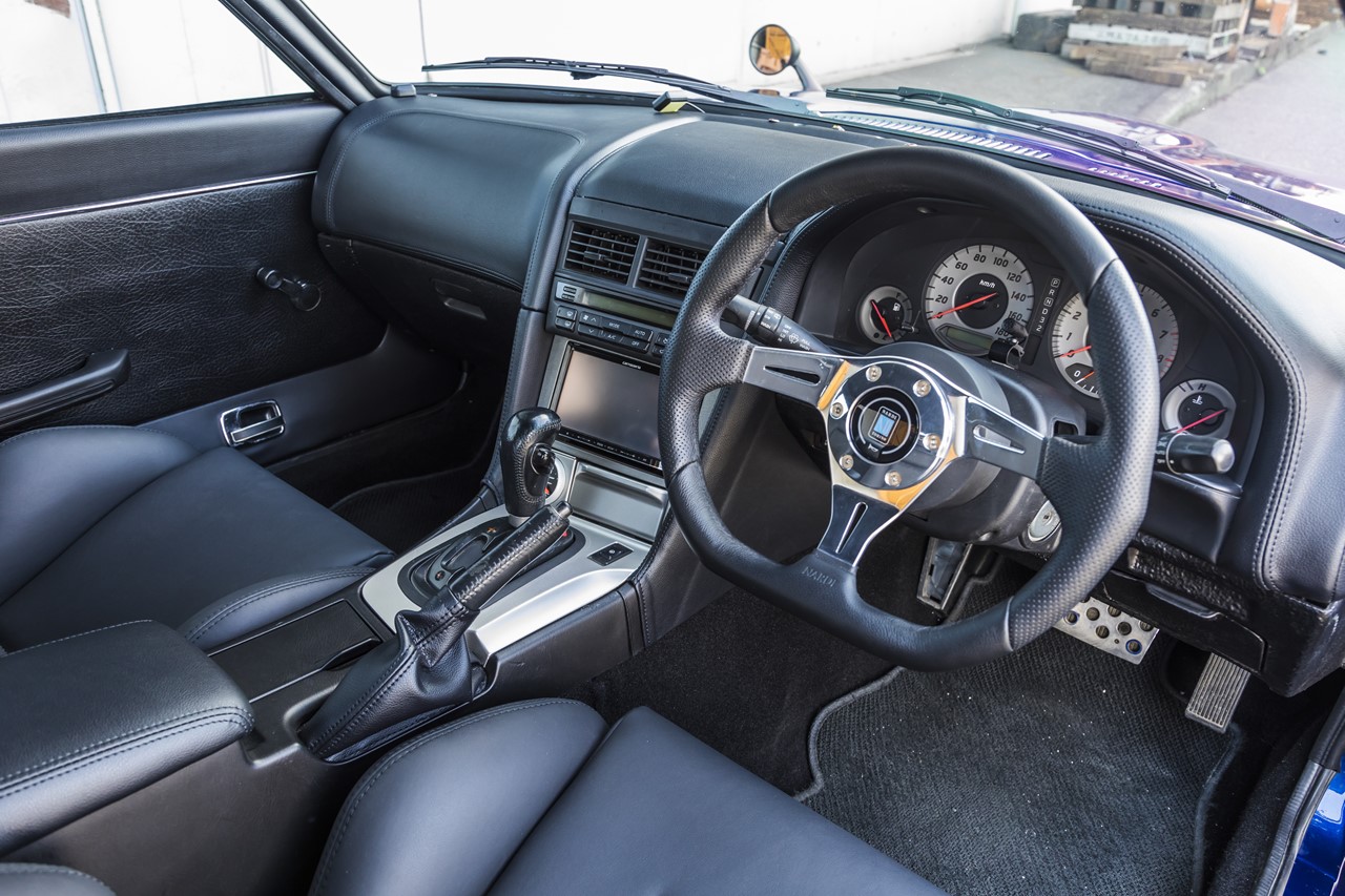 ダッシュはR34用をZのキャビンに合わせて幅を詰めて装着したもの。ステアリングはDシェイプのナルディで、愛美さんがチョイスしたもの。当然だがパワステも完備なので、女性でも軽々と操作可能だ。