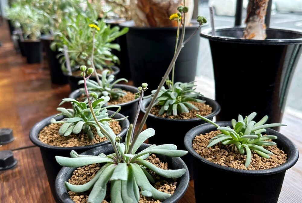 南アフリカに140種類ほど存在すると言われるキク科の植物「オトンナ属」。代表的な品種であるオトンナ・ユーフォルビオイデスなどをはじめ、日本国内で種から育成された実生株の流通が多い品種は、比較的入手しやすく人気も高いことが特徴です。
