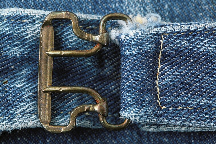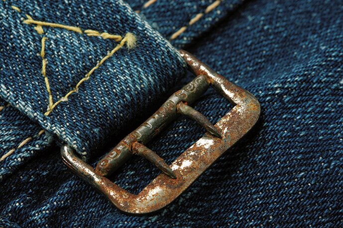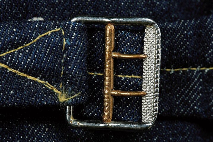 滑り止め付きのバックルから大戦後の’40年代後半のものと推測される506XX。この後は針なしバックルが使われるようになる。