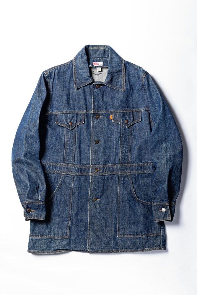 1970年代らしいミドル丈のデニムジャケット。ここらへんのデザインはまだ落ち着いたプライスなので狙い目。濃紺でオレンジタブ。1万9800円