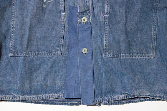 1930年代のUSアーミーのユーテリティジャケットをリメイクした個体。本来はプルオーバーのデザインであるが、前開きに。参考商品