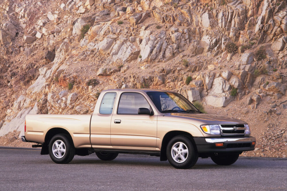 それまで存在したハイラックス・ピックアップの歴史を受け継ぐカタチで1995年モデルとして生まれた初代タコマ。2駆と4駆が存在し、キャビンは2ドア・レギュラーキャブ、エクステンドキャブ、4ドアのクルーキャブの3種類がラインナップされた。
