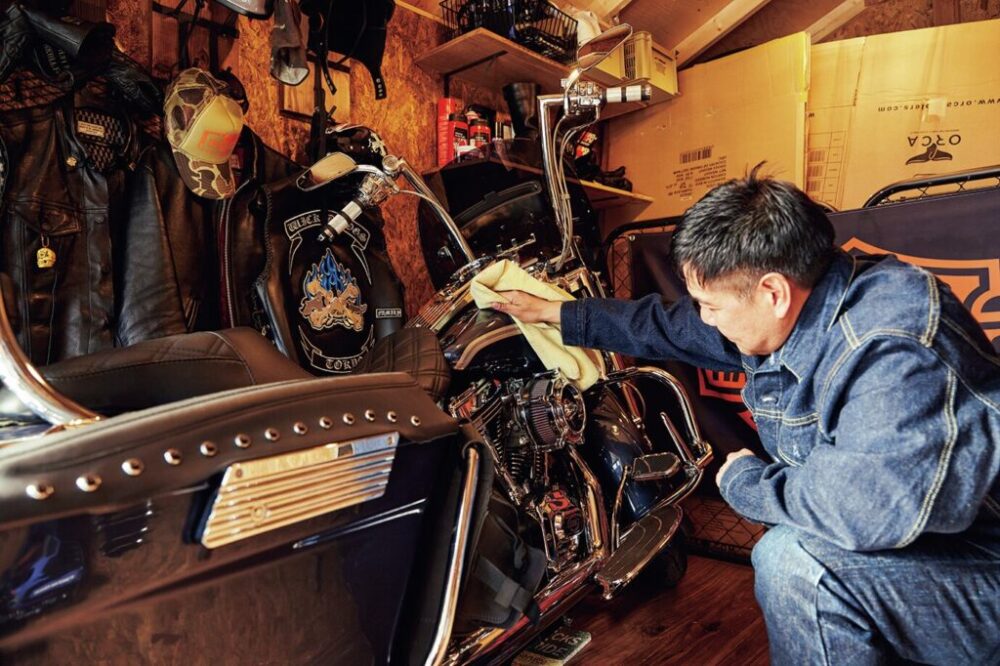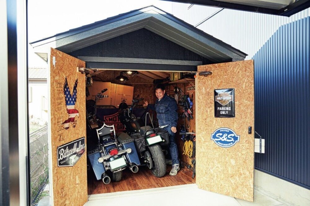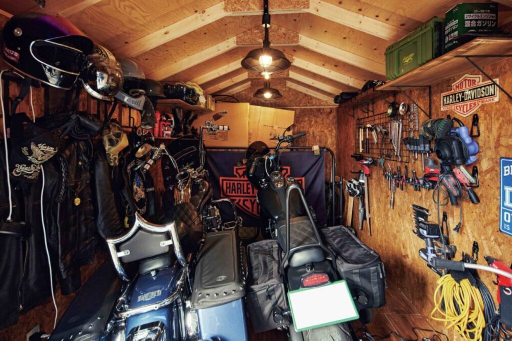 「愛犬が白内障になり、目の見えるうちにいろんな経験をさせてやりたい、キャンプにもたくさん連れていってあげたい。そんな想いから、OUT TAILをオープンさせました」。それだけではない。千葉県・館山にキャンプ場をオープンさせたというから、その行動力には脱帽だ。週末ともなると、ハーレーに跨り、館山に向かう。ハーレーを置くためのガレージも、ワンダーデバイスの横に作った。