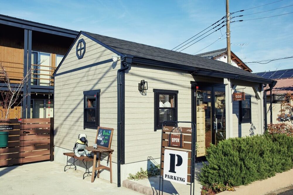 中小企業診断士として忙しい日々を送る松﨑さんだが、実は愛犬用のアウトドアグッズを扱うショップ[OUT TAIL]も経営しており、木更津に移る際に、都内にあったショップも移転。家の敷地内にショップをオープンさせた。