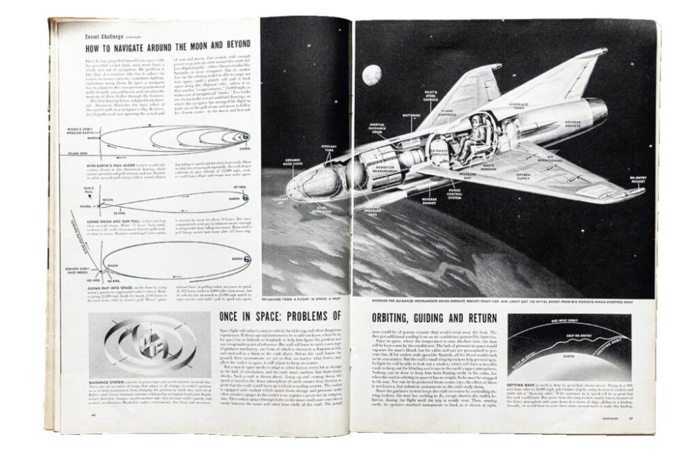【1957年/LIFE】旧ソ連による月面着陸ロケット開発の現状を伝えた記事。ちなみにこの年、旧ソ連は人工衛星スプートニクの打ち上げを大成功させている。