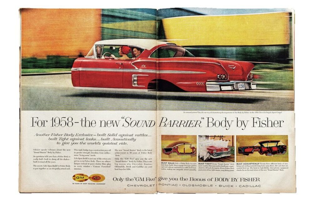 クルマが大衆化したと同時に、そのデザインにロケットや飛行機へのロマンが落とし込まれ、派手さを極めた時代でもある。乗り心地や空力を大衆車にも言及し、スピードを求めた若者たちによるカーレースも盛んに行われるようになった。