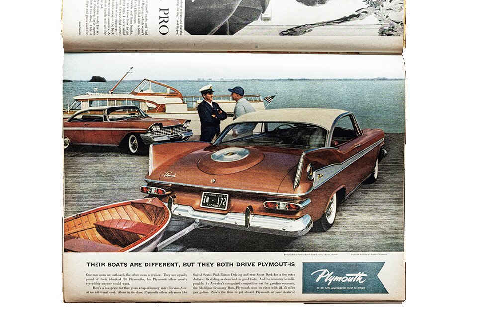 【1959年/ LIFE】GMの大衆車ブランド『シボレー』に対抗し、クライスラーが1928年に作ったのが『プリマス』。その’59年型の広告だ。