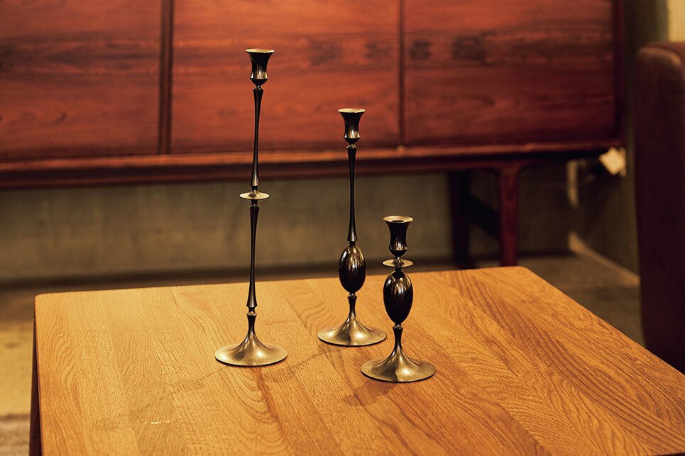 Candle Stick。テッド・ミューリングがデザインしたキャンドルスティック。高さや形が不均一なところが遊び心がある。単品で販売しているので、好きな組み合わせで購入できるのが嬉しい。12万1000円〜