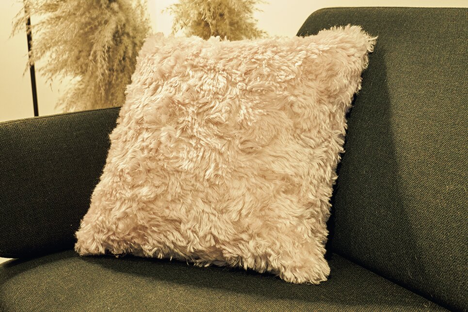 KVADRAT RAF SIMONS HOME COLLECTION。シンプルになりがちな空間にアンゴラヤギのふわっとしたクッションをプラスすることで、一気に温かみのある雰囲気に変身。5万9070円