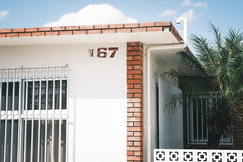 元々プレートが貼られていたそうで、剥がしたら出てきたのがこの数字。住所の番地が壁に直で書かれていて、書体などいい風合いだったため残したそうだ。