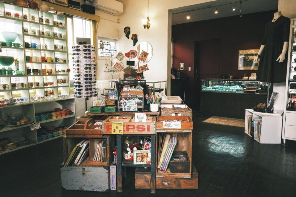 港川ステイツサイドタウンにあり、観光客はもちろん、ヴィンテージ好きが多く訪れる店。雑貨やファッション、テーブルウエアなどジャンルも様々。