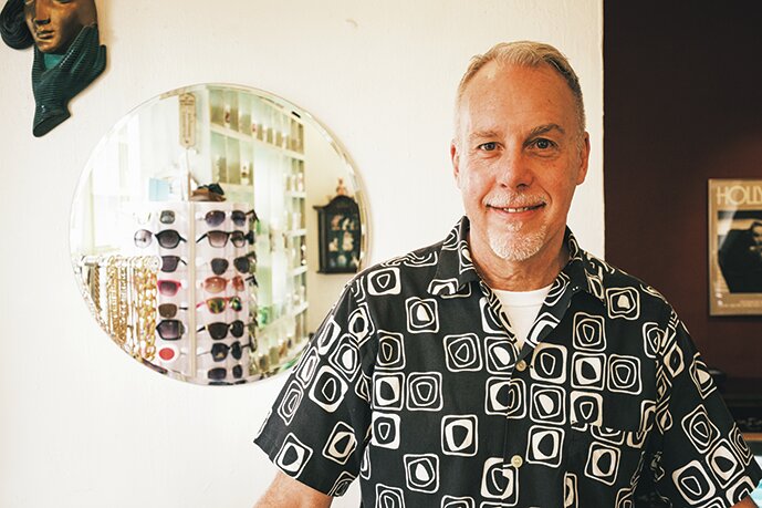 ケンタッキー出身のクリスさん。16歳の頃からヴィンテージが大好きで、1985年にアメリカで店をオープン。1998年に沖縄を訪れ移住した。